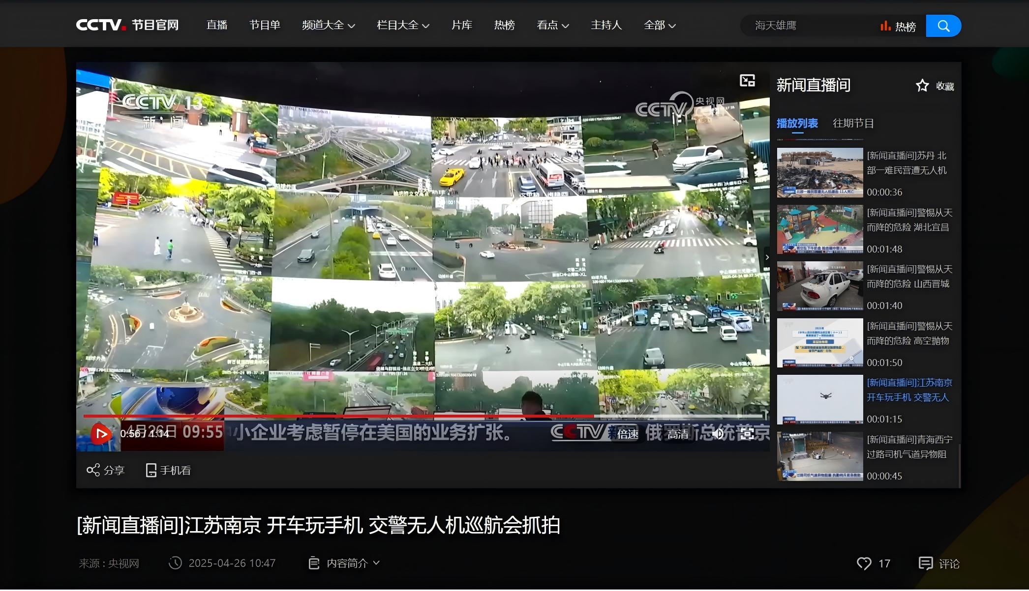 央視新聞報道:南京交警無人機巡航抓拍開車玩手機、慢駛等交通違法行為。